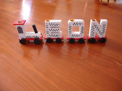 For as long as I can remember, well maybe not that long, but it seems as long as we've had children one of the holiday decorations that we've used in our house at Christmas has been a little train of letters that spells the word "Noel". Children have great imaginations and one day when I looked over at the little train it did not spell "Noel". See picture below.