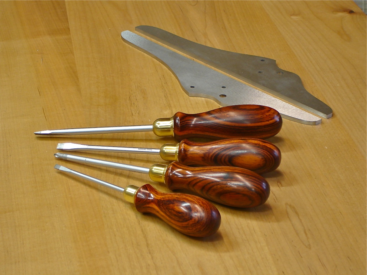 Cheap, poorly designed screw drivers are hard on your hands and most of them don’t fit the slots of common screw sizes well at all. When they slip they mark your work and this just creates more work for a plane maker. The Elkhead Tools drivers are an absolute pleasure and quite frankly every time I hold one in my hand I marvel at how they nestle in my palm and the feel of the cocobolo handles is just so enjoyable that I believe I unconsciously smile every time I pick one up.