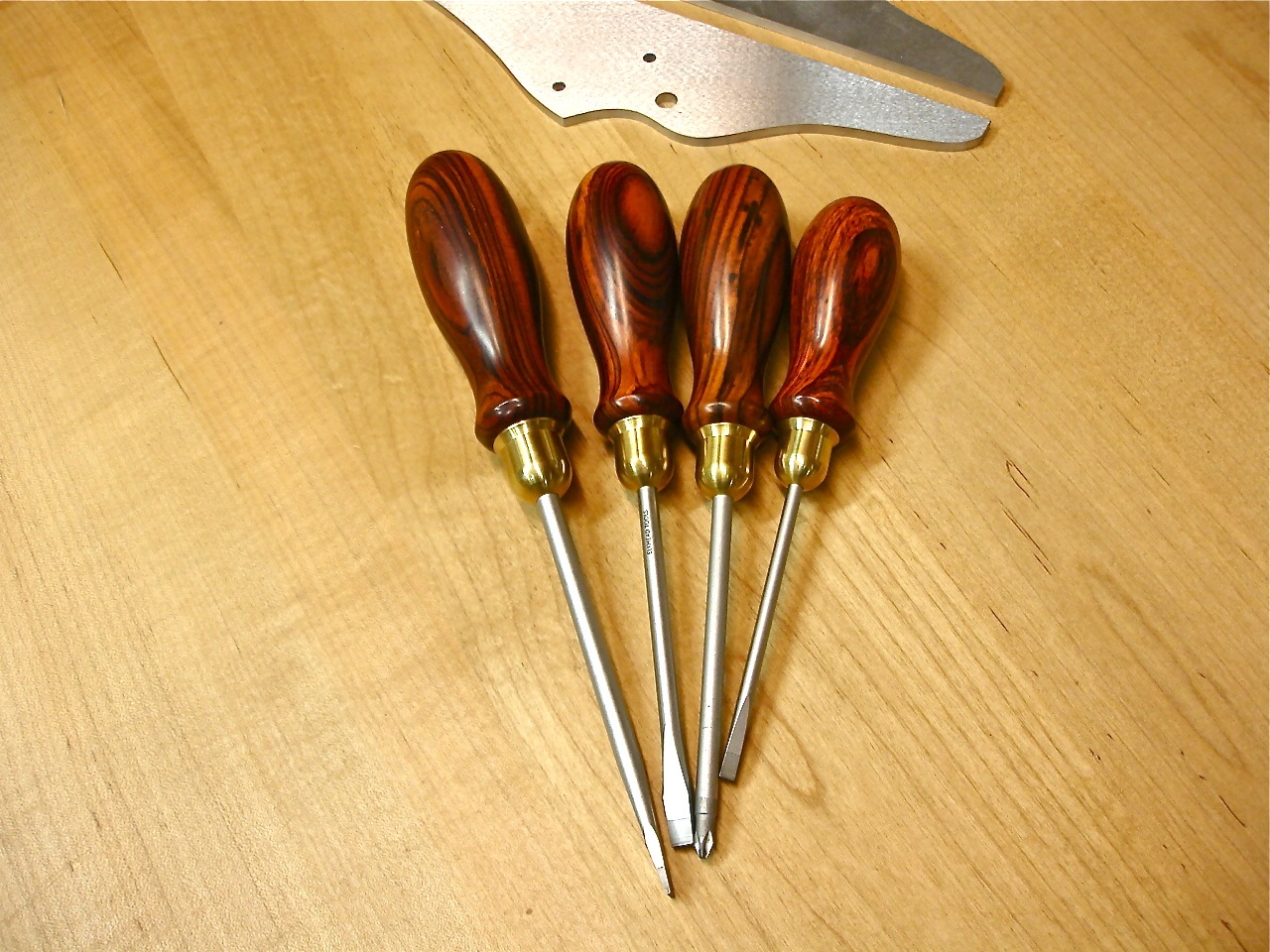 During the years that I made furniture I often wished for a good set of wooden handled screw drivers. I searched for this elusive tool and the best I could find was a set that I purchased from Garrett Wade. They had square wooden handles with a sprayed lacquer finish and even though they were better than the plastic variety they still left something to be desired. They were advertised as being made in Germany. They were not exactly the Mercedes of screwdrivers.