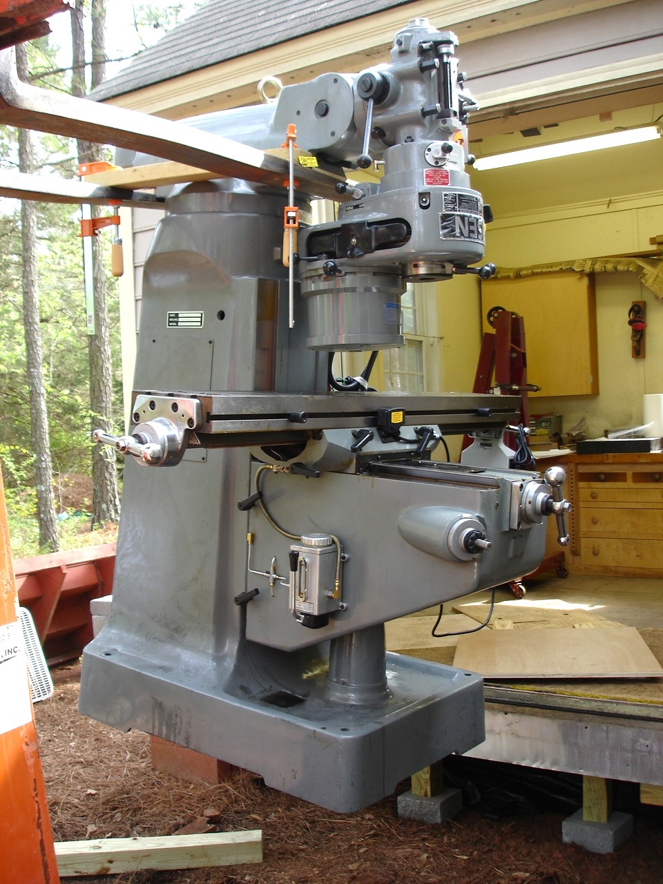 This latest upgrade has been one of the most challenging I've attempted to date. I know there's a guy with a beard in Cedar Rapids, Iowa that might want to argue this point, stating this machine did not have to be moved out of a basement during two rainy days. However the acquiring of the knee milling machine pictured in this post encompassed many structural and technical aspects that had not been issues in prior machinery additions. The picture above shows the mill fresh off the truck.