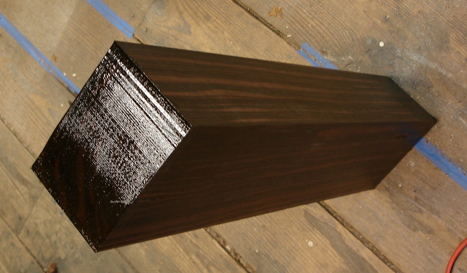 At this point I stopped to seal the freshly cut end of the billet. Most checks start in end grain and I've found a good coating with a 3 lb. cut of shellac helps keep this part of the billet from drying too quickly.