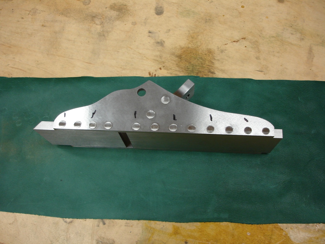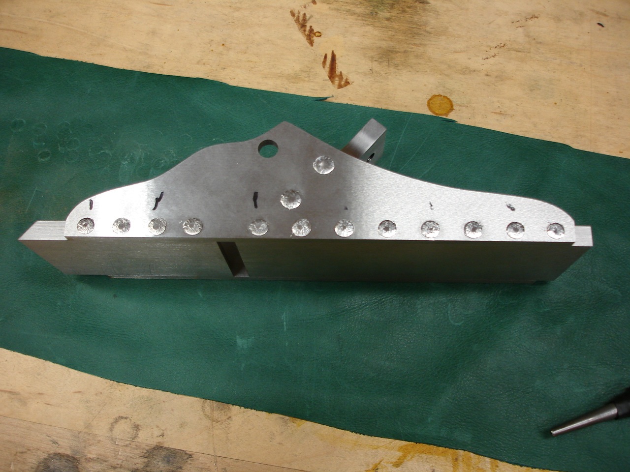 I get a lot of questions about my plane body assembly method. Once a plane body is assembled it becomes necessary to make the assembly hardware go visually away. In the picture below all the pins on this 812-50S stainless plane body have been milled down to within 1/32 of the plane side.
