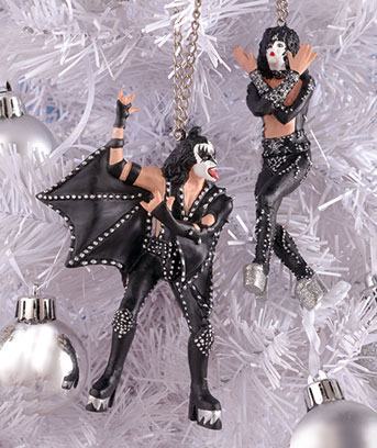 KISS Christmas tree ornaments. I'm sorry but this is just wrong on so many levels. I think even KISS fans draw the line at Gene Simmons Christmas decorations. If you will have one of these ornaments on your tree this year don't tell me about it. I may just not want to know you.