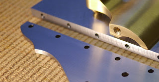 The first day of the build I roughed out the plane sides from precision ground 1018 steel using a bandsaw. After a quick course in basic mill operation Ron set me loose on his Bridgeport-style mill and I proceeded to mill up the sides of the plane, as well as the sole pieces and bedding plate. My constant fear was crashing the bit into one of the vises, the table, or the workpiece. None of that happened, but I did end up encountering some rather tense moments. At one point I was feeling pretty proud of what I had accomplished, and the next I felt like I was back in junior high industrial arts. Needless to say, I learned an enormous amount on Monday. Ron was an extremely patient teacher, and gave me a wide latitude in figuring things out for myself. That ended up teaching me a great lesson, but it also made for some frustrating moments. I guess the best way to learn is to make mistakes. I won't argue with that. As Monday drew to a close I set my plane parts in a safe place and breathed a sigh of relief that I had made it through the first day without completely ruining Ron's mill, or my plane parts. If I had known what Tuesday had in store, I may have just booked an early flight home....