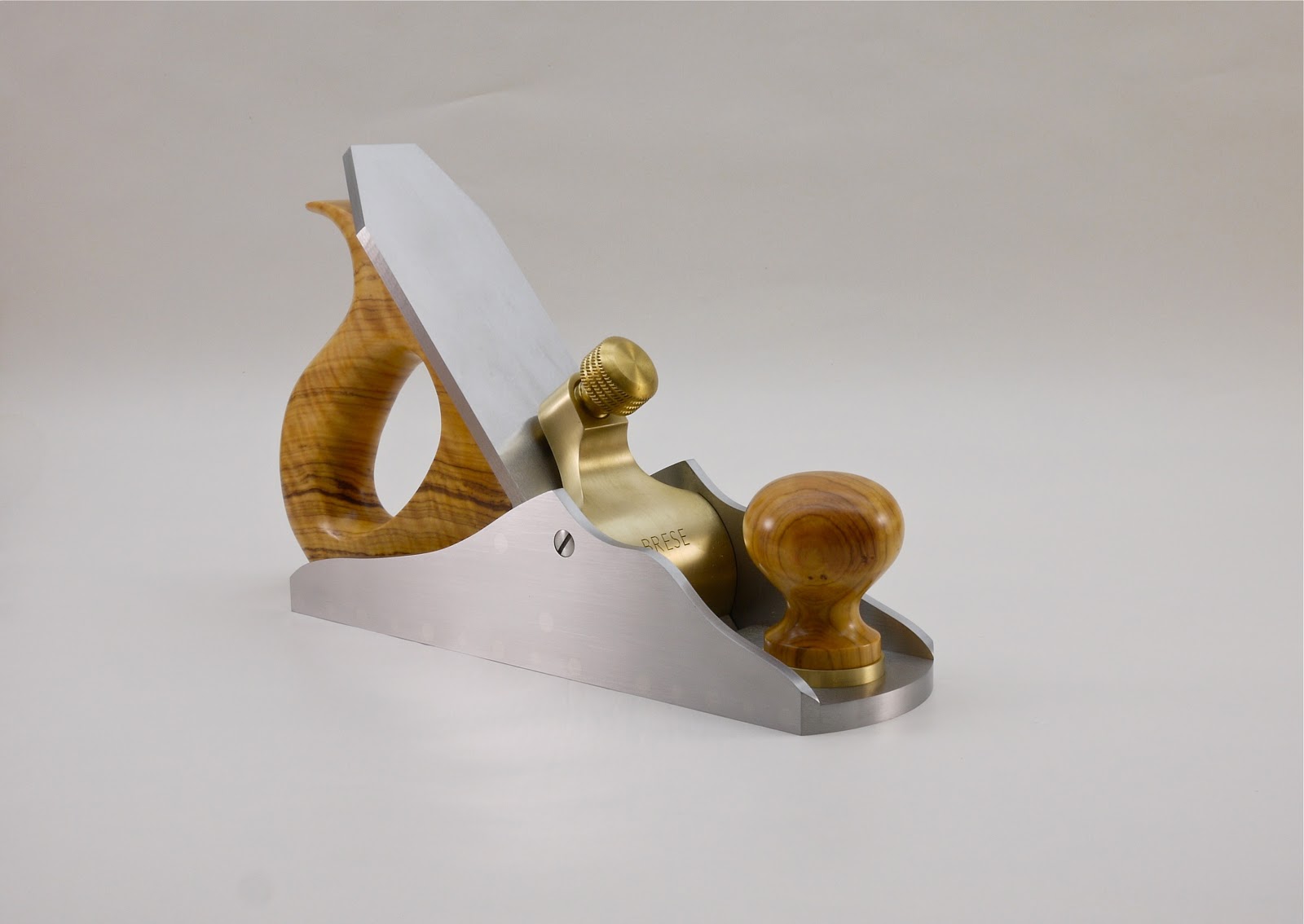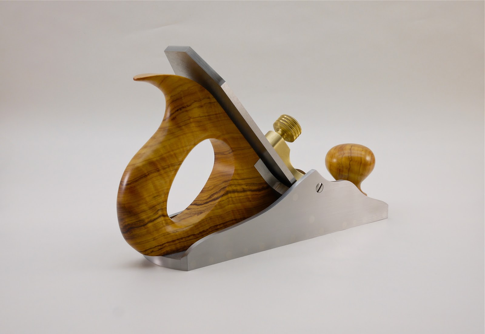 The other plane that I've recently completed is a stainless 912-50S Smoothing plane.(See Below) This tote and knob came from what could possibly be the best piece of Olive I've had the pleasure to work. Curl figure along with contrasting dark striping. Another notable thing about Olive is the curl figure gets more intense as the color darkens. The first piece of olive that I used to make plane parts did not really show any evidence of curl but once it aged curl began to show up all thru the tote and knob.