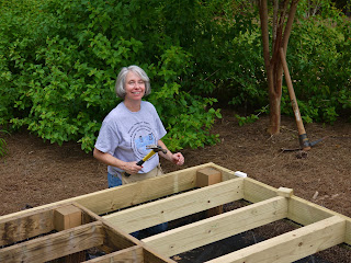 One other problem we had with the old deck was armadillos. It was open access underneath so one of those critters took up residence and made a burrow against the foundation of the house where it proceeded to dig down all the way to the footing. We had to back fill the burrow and tamp everything back into place. Settling and shrinking pressure treat lumber make it necessary to reset the grade on the old frame. Finally we were ready to do some actual building.