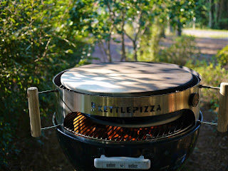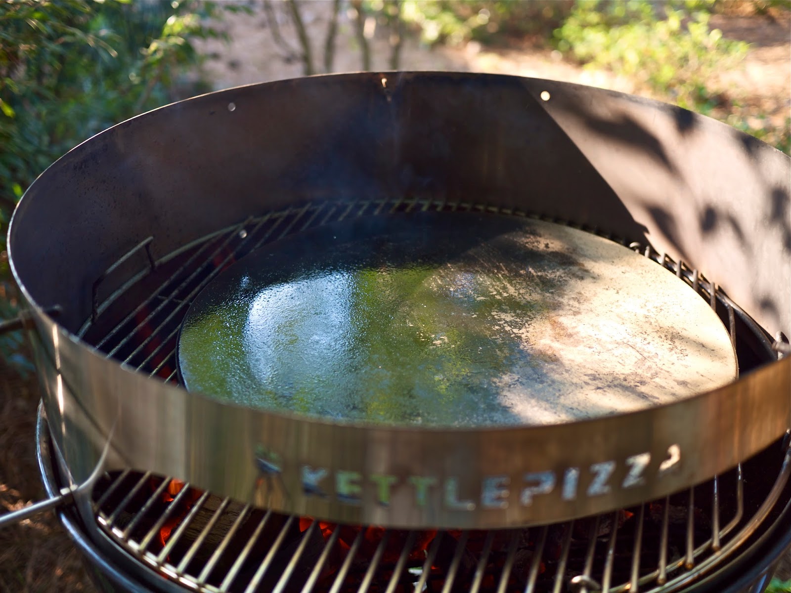 Then you add the Kettle Pizza band and the stone where you will be actually placing the pizza. The shiny appearance on the stone is a freshly applied coating of olive oil.