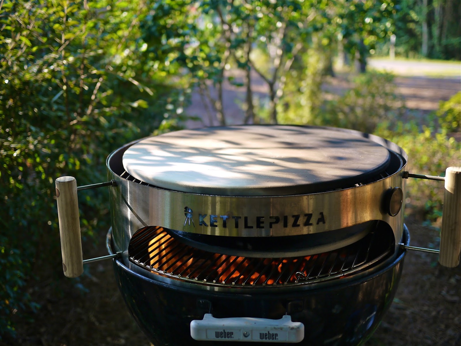 If you buy the "Kettle Pizza" kit that basically just gets you a way to put pizza in and out a Weber grill and gives you easy access to the stone on the grill. You will never get this setup to cook the top side of the pizza sufficiently. The top of the grill is thin metal and it just doesn't have the capability to retain and radiate heat. It requires a modification. But first you need a good fire and to that fire you need to add some chunks of wood. The wood will raise the temperature inside the grill much higher than with charcoal alone. You need to position the coals toward the rear of the grill so that the heat rises from the rear and then flows over the top of the pizza as it convects toward the opening.