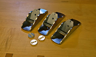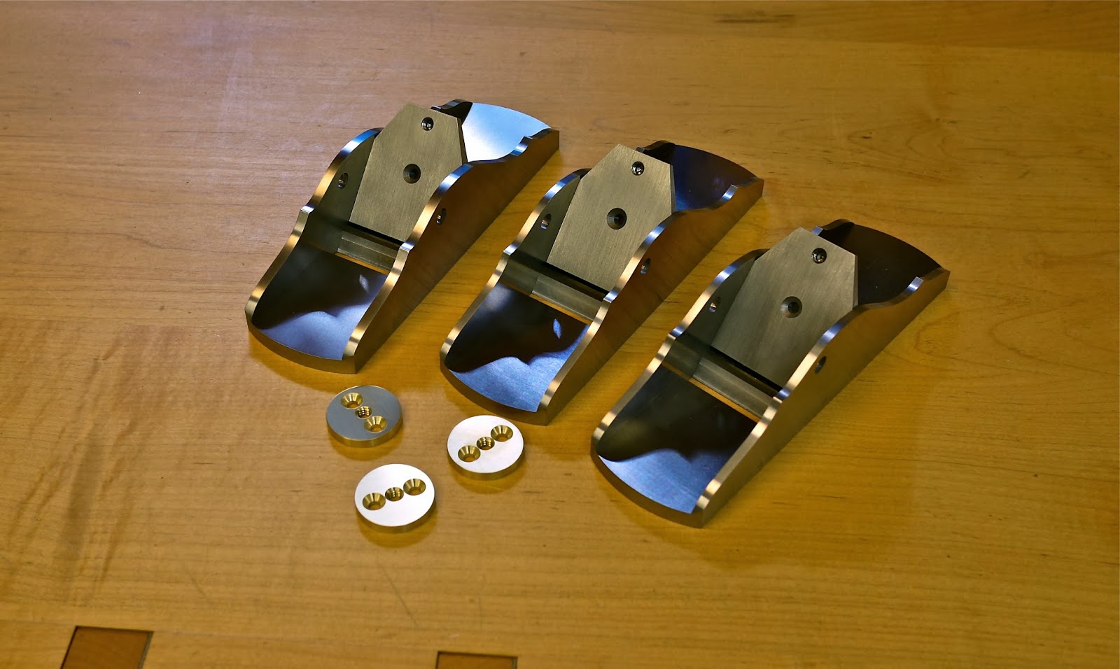 One customer requested that I make this plane for him in 440c stainless. You may notice that the plane on the left in the picture has slightly thicker sides. The standard side thickness for this plane when made in 0-1 steel is 5/32 (.156), however I can only source the stainless in 3/16" (.187). If I try to dramatically reduce the thickness of the stainless it will stress relieve and frankly it will bow and do all kinds of crazy stuff. The only remedy to this would be to stress relieve this material and frankly I have no way of exposing this material to the kind of heat required to accomplish this so 3/16 sides it is on the 440C version of this plane.