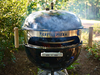Ultimately I would like to own a brick or masonry wood fired pizza oven, however I am presently making do with what my oldest son calls a FrankenWeber. I cooked pizza tonight and here is my process of the actual cooking. I won't go into recipes and such at this time.
