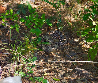 It actually would be a rare fall if we didn't see a one of these snakes this time of year. I guess it's getting too cool for them to operate efficiently at night and they're trying to feed a bit more before time to hibernate for the winter, so it just makes sense they would be more apt to crossing paths with a human this time of year. Of course finding yourself in close proximity to one of these is always an alarming experience. We went our way, the snake went his. Everyone was happy....well I guess the snake was happy. Who knows how a snake feels after an unexpected shower?