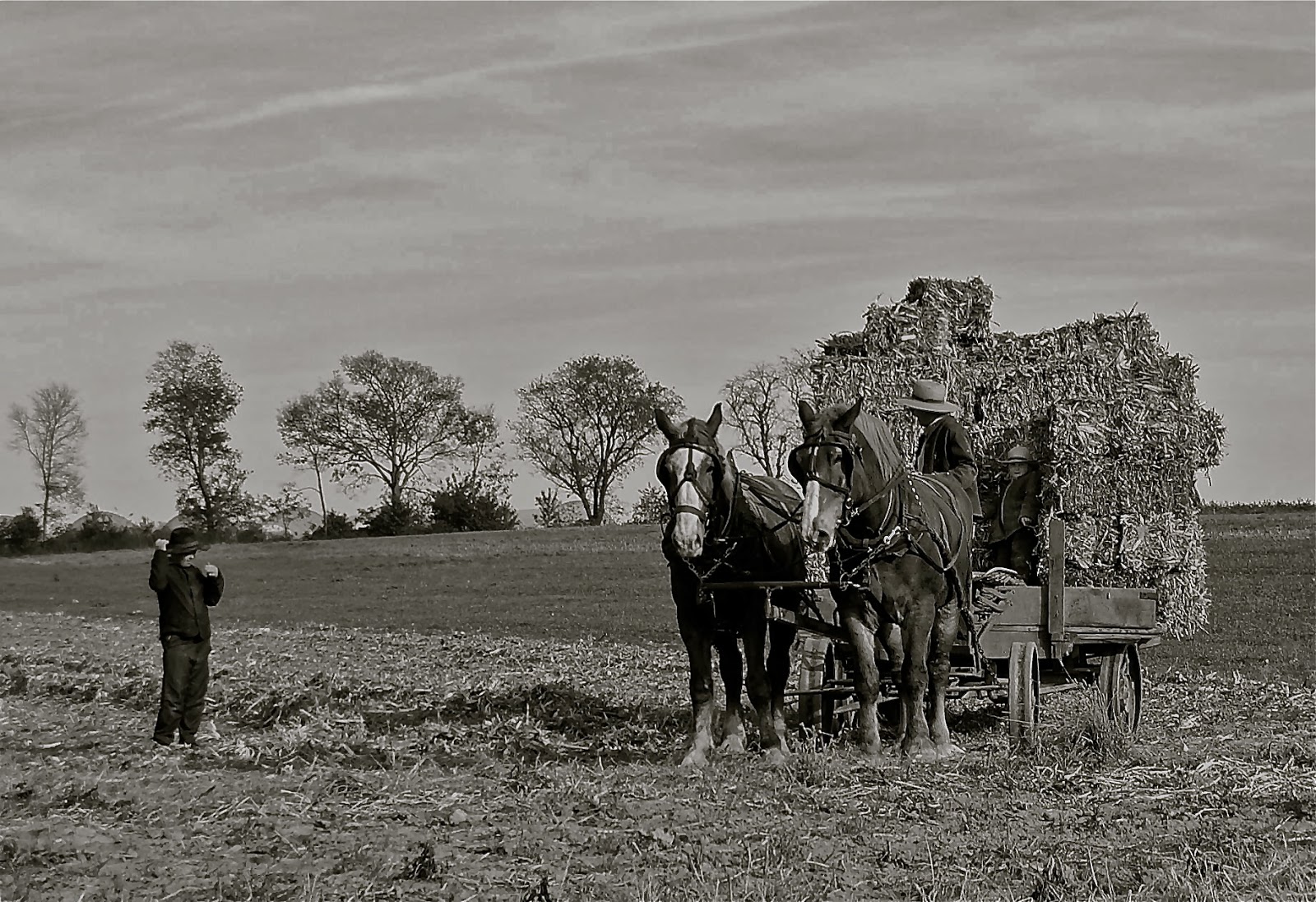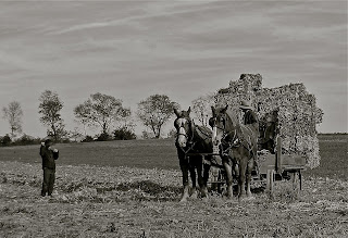 During this time of year my preference is typically photos of fall harvesting as shown in this picture. This photo was not found in historical archives. Helen English Ellis snapped this photo just this week in Lancaster, PA. As a kid I was involved in square bale hay harvesting but the wagon was pulled by a tractor. A team of horses doing this work is a thing of beauty. Also notice the kid in the shadows of the bales.