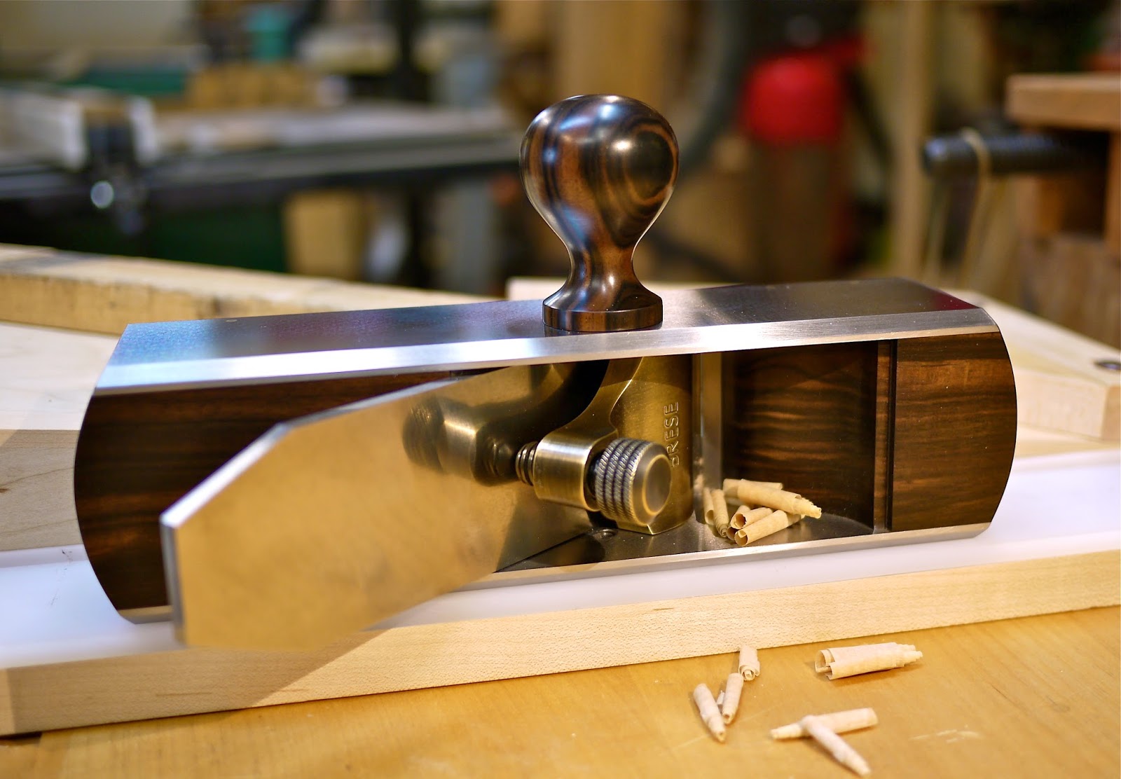 There are options when ordering this plane. Which type wood for the knob and tote, brass parts with a bright satin finish or patina'd brass. Every once in a while a customer will specify exactly the details that I would choose if I were building the plane for myself. As lovely as this sounds it creates an inner struggle.