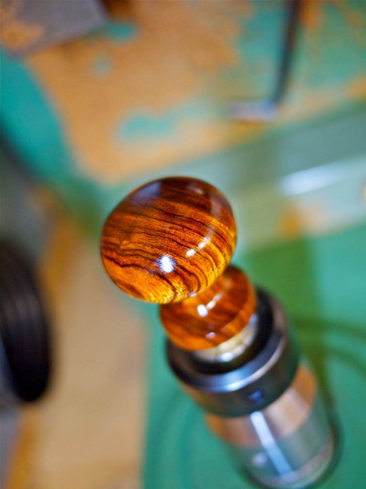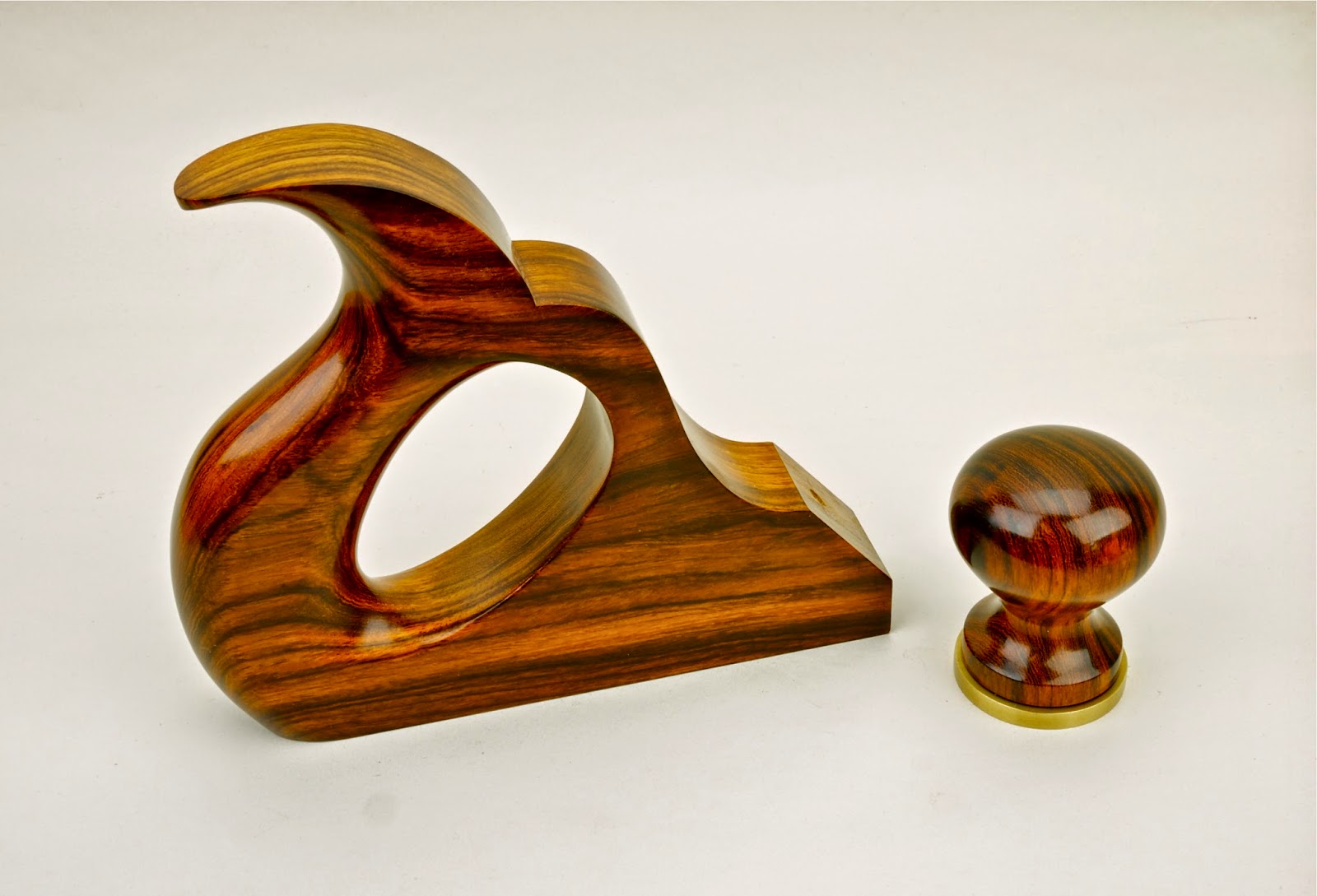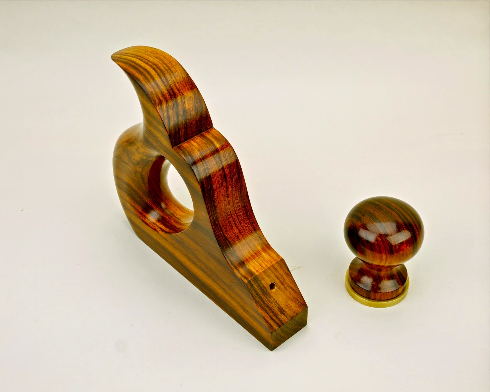 The piece of olive that produced this knob and tote had a large degree of color variegation, probably the most I've observed in any piece of olive yet. It's these kind of characteristics that make each plane unique.