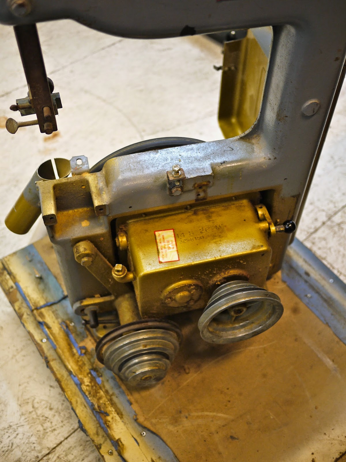 My original plan was to just set the saw up and run it as it was for a while so as not to upset the schedule of work I had planned for the shop. The more I thought about this and the oil soaked material that was in the saw I really feared that sparks from metal cutting might well set this saw on fire. I didn't really want to be that guy that had a saw and a good bit of his shop burn up right in front on him, so before I took the other saw out of service I set about dis-assembling this saw. The next two weeks I spent evenings and weekends restoring this saw.