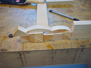 Cleaning up the saw marks from the bevel surfaces of the seat stretchers