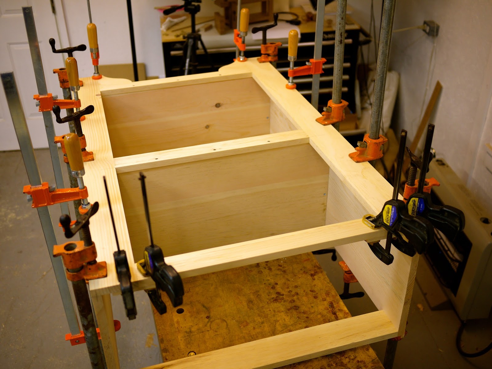 The next day the sides were joined to the interior panels and a face frame was made and glued to the other parts that make up the case. This piece is progressing rapidly.