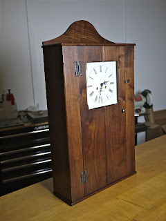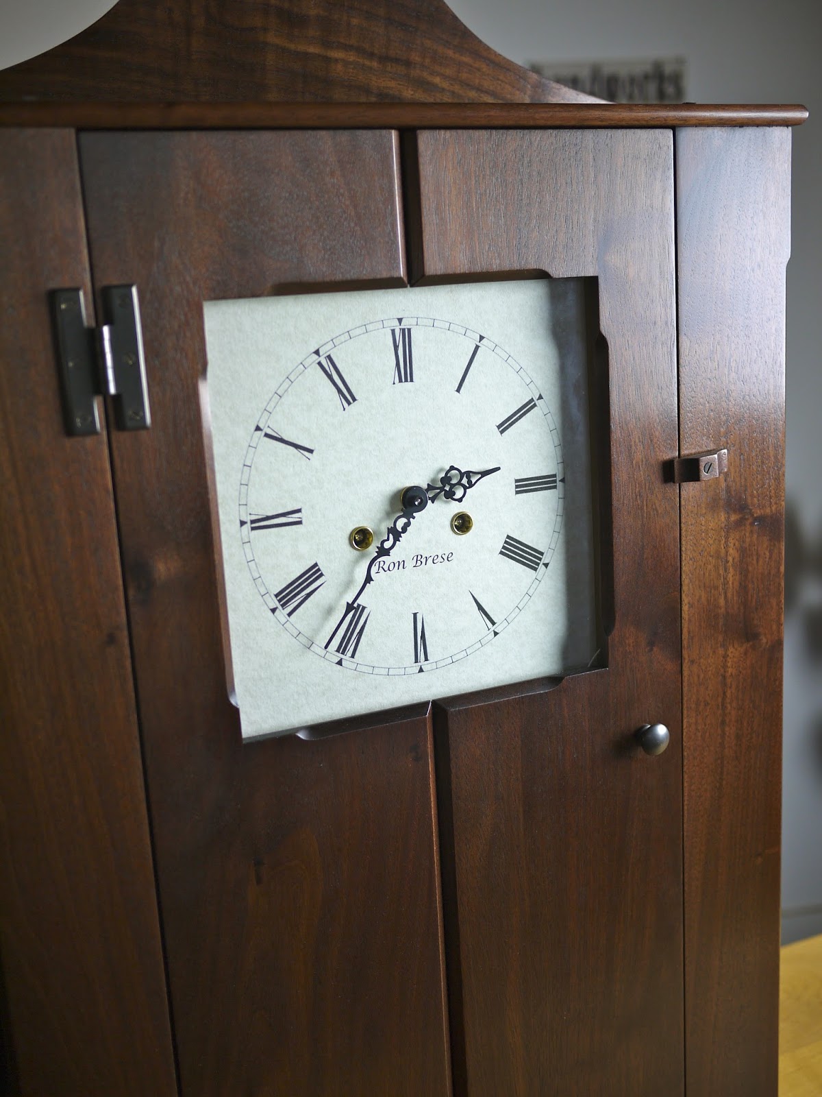 A display cupboard with glass in the doors, or an open hutch section would have been an exception, however any surface that faced to the wall would have been left un-refined. As an example, the walnut clock I recently completed had back boards that were finished only on the side facing the interior of the cupboard. The backs of those boards were left with the finish right off the re-sawing blade from the bandsaw. In many cases in history even the interior surface may have been left rough as well. I felt I was justified refining the interior surfaces considering a person would in fact see that surface approximately every 14 days when the clock needed to be re-wound and set. However those would not have been considered show surfaces in earlier centuries and that labor would have been saved for the decoration of the exterior of the piece.