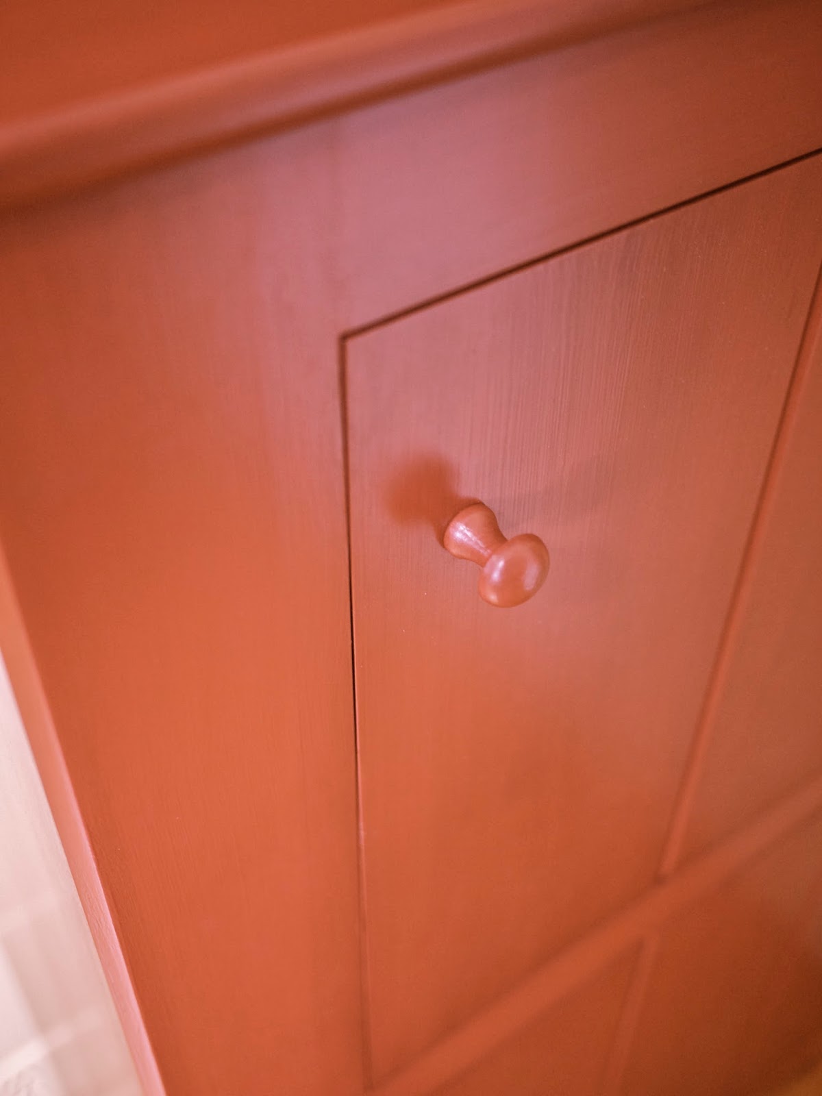 As Julie and I developed this idea thru comments and conversation we decided on a simple piece that would receive a Cape Cod red exterior and a colonial yellow interior.