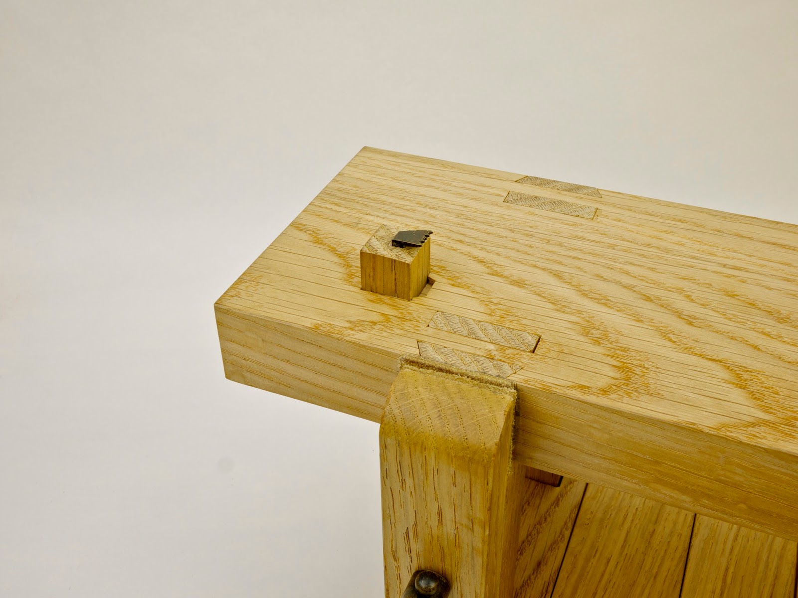 Here you can see the shape of the foot. I've reinforced the join at the very bottom of the foot with a glue block on the inside surface. This area is vulnerable to damage so the extra work here is justified. You may also notice that the cross members are fastened to the dividing panels with cut nails. Not only do cut nails give a certain look to the piece they are highly functional fasteners.